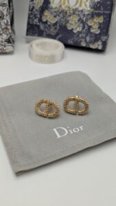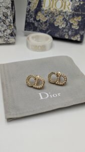 Elevate your everyday style with these timeless Dior studs. Crafted in a classic gold-tone finish, the “CD” signature is meticulously pavé-set with brilliant clear crystals. Their minimalist yet bold silhouette makes them the perfect transition piece from office elegance to evening glamour.