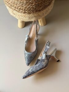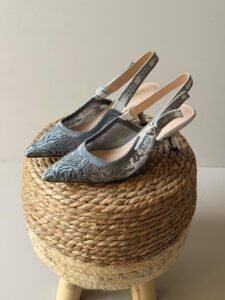 Be the first to review “Grey Embroidered Mesh Slingback Heels”